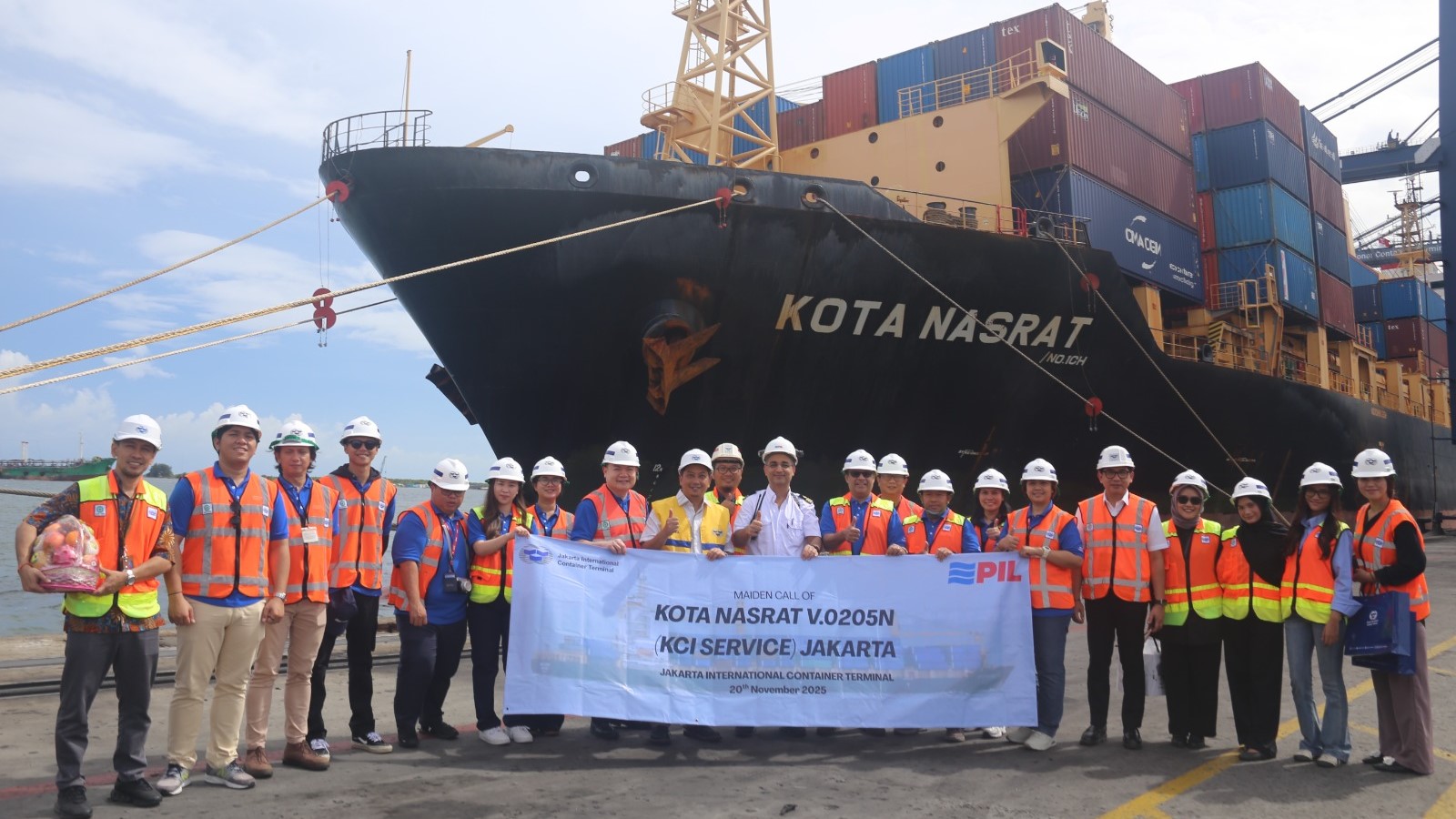 Jakarta, 20 November 2025, Terminal peti kemas terbesar di Indonesia, Jakarta International Container Terminal (JICT), hari ini menyambut kedatangan perdana (maiden call) kapal M.V. Kota Nasrat, bagian dari layanan KCI Service milik Pacific International Lines (PIL).
