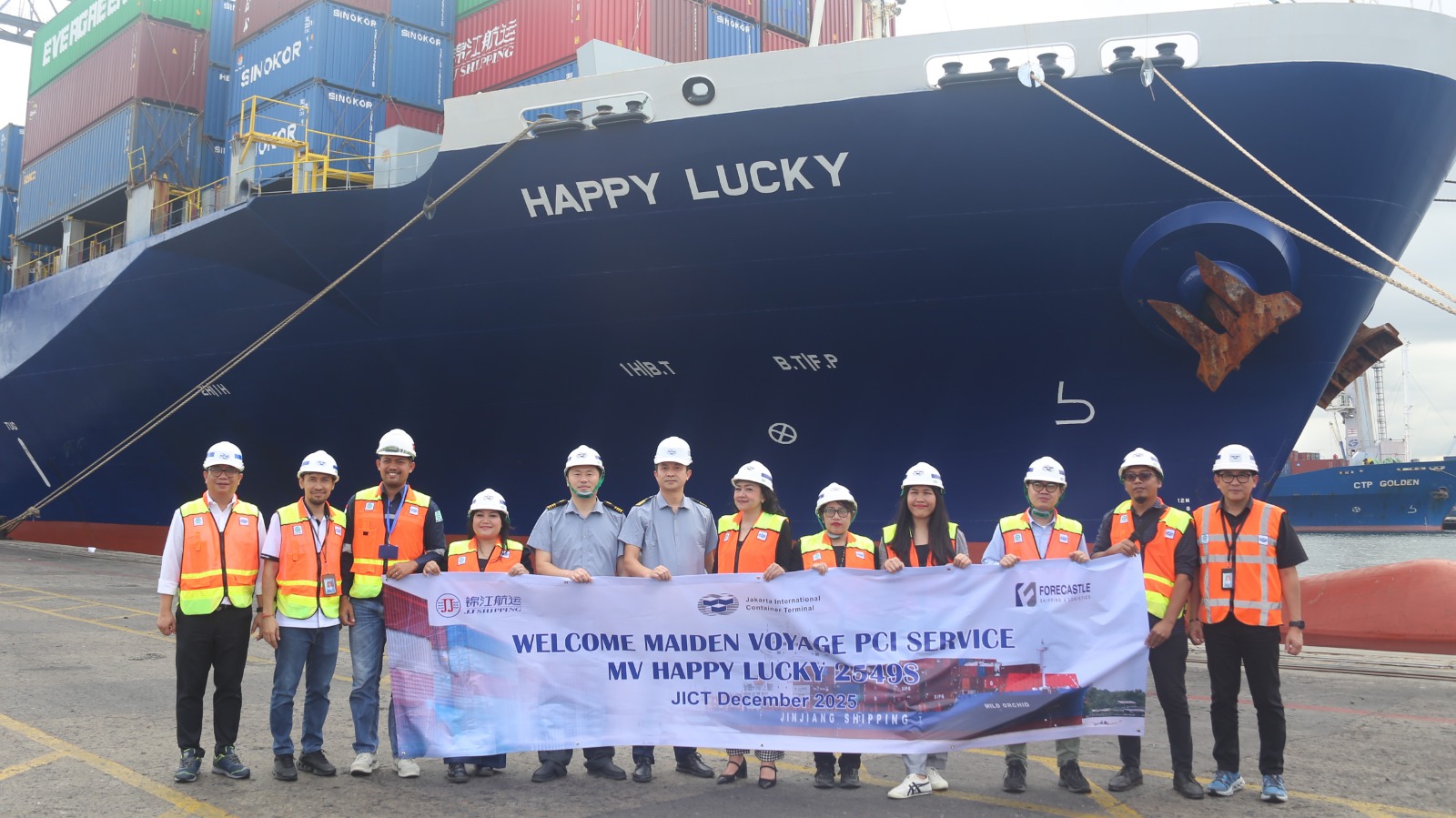 Jakarta — Jakarta International Container Terminal (JICT) menyambut kedatangan maiden voyage PCI Service yang dioperasikan oleh MV Happy Lucky 2549S.